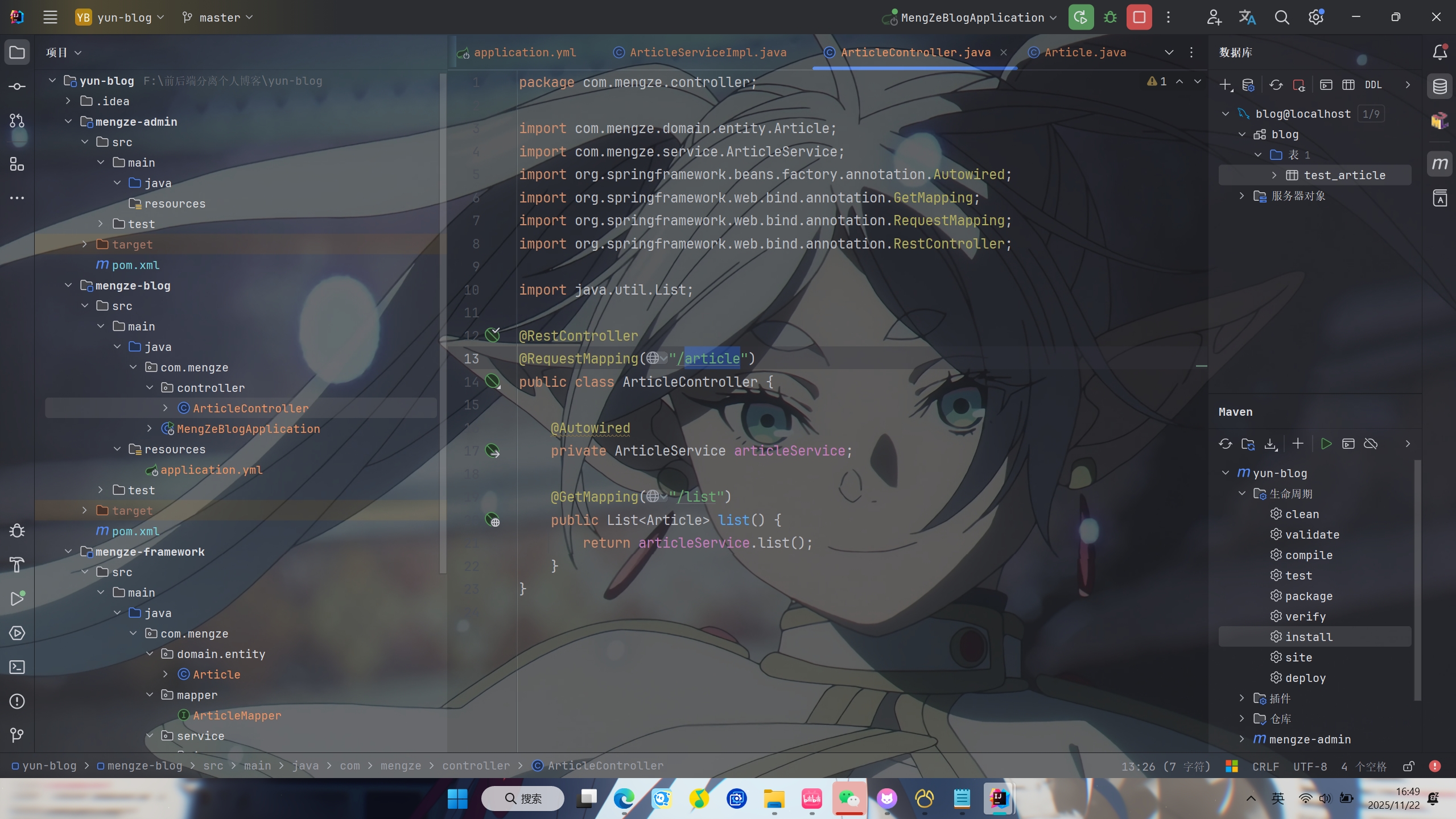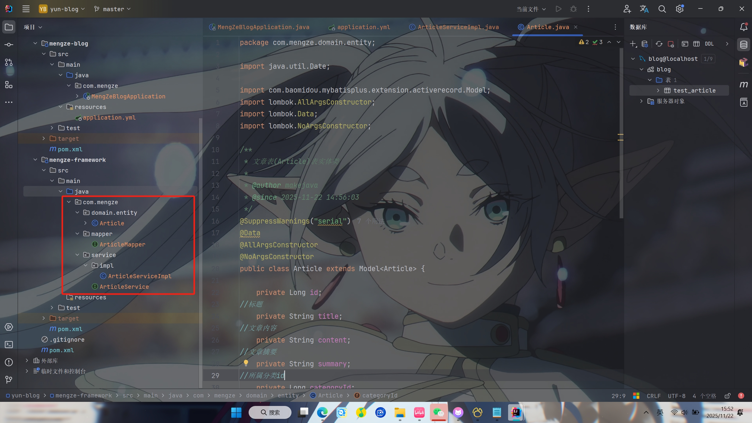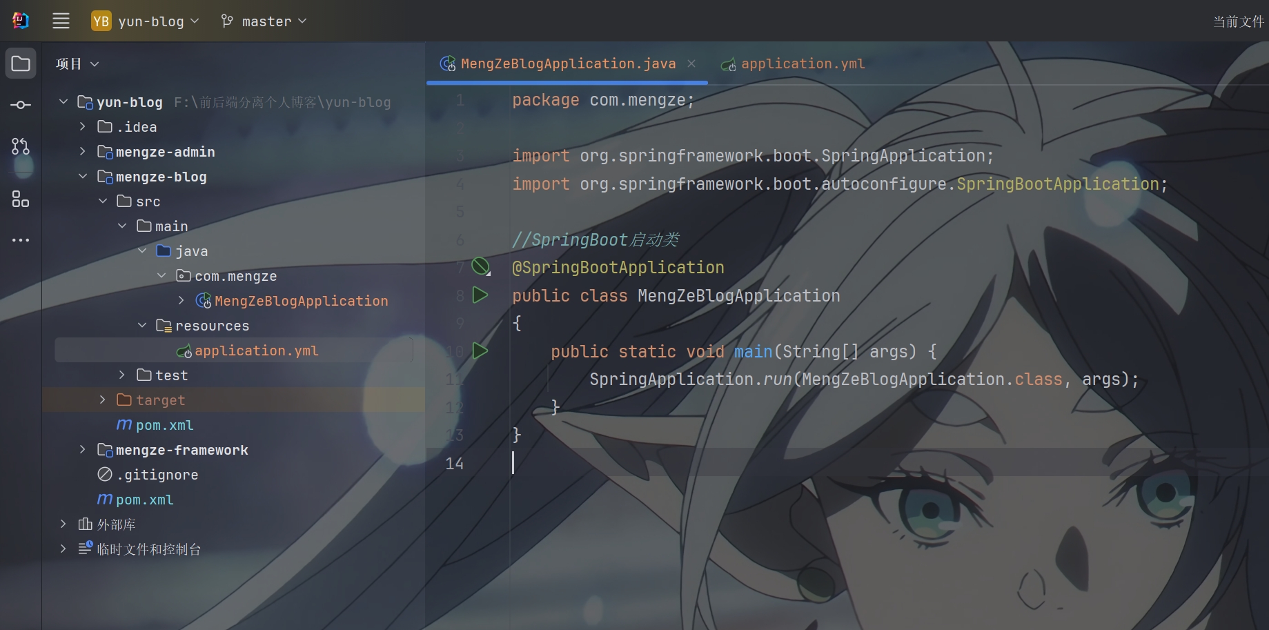 在实际开发中mengze-blog和mengze-admin模块中的一些表单有可能重复(entity,mapper,service)