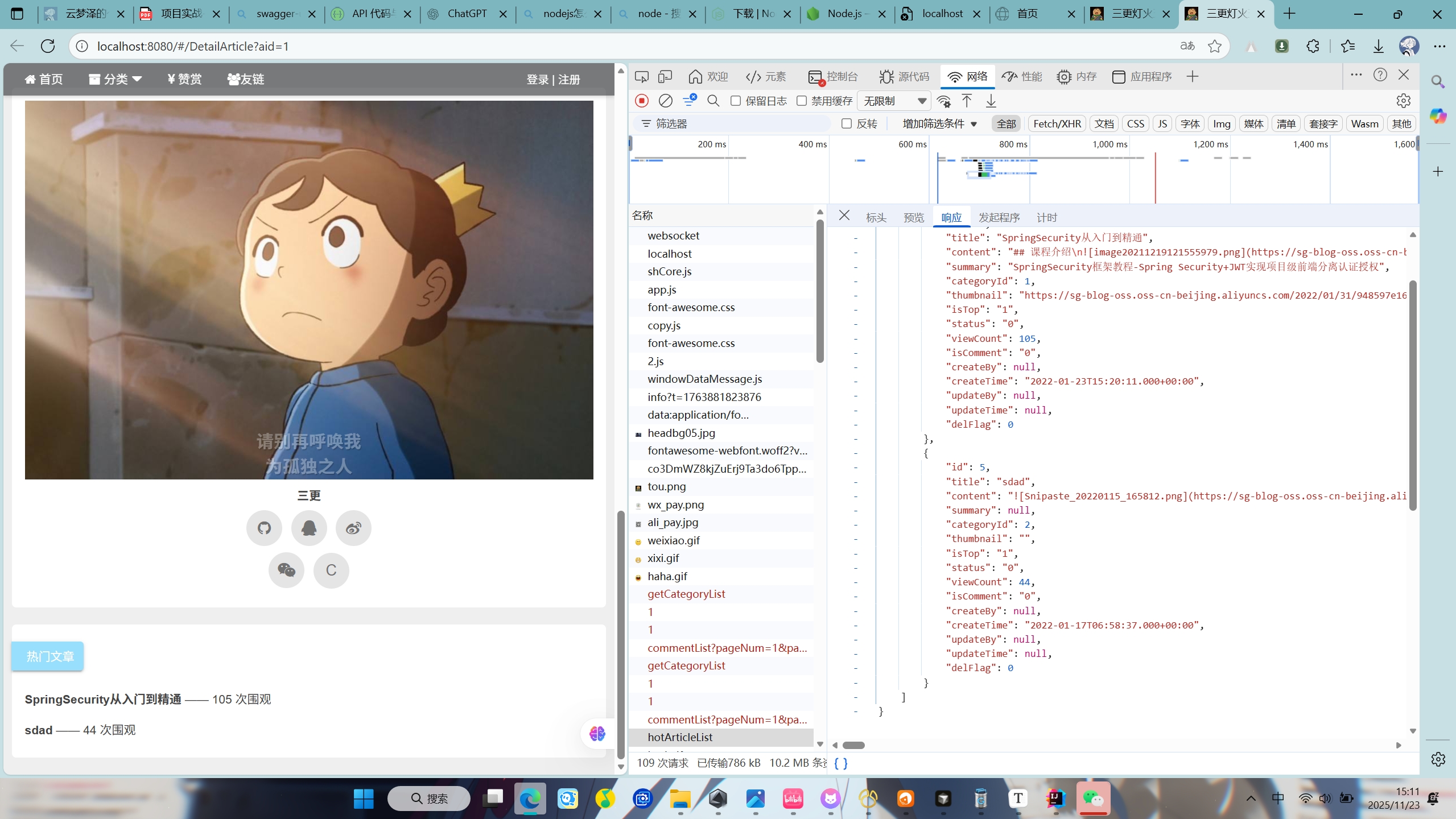 跨域问题解决后前端热门文章页面成功显示