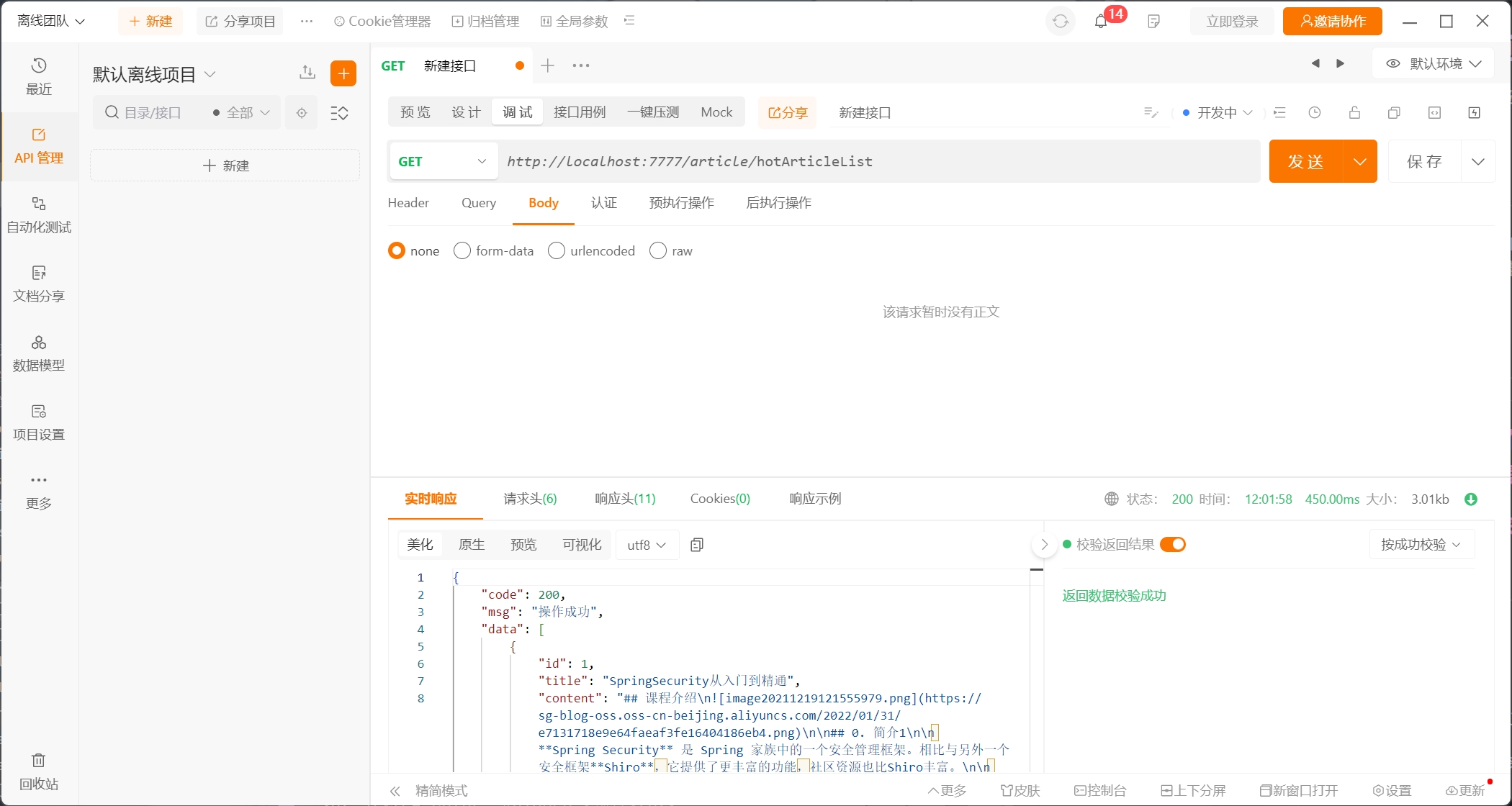 至此热门文章页面的接口测试完成