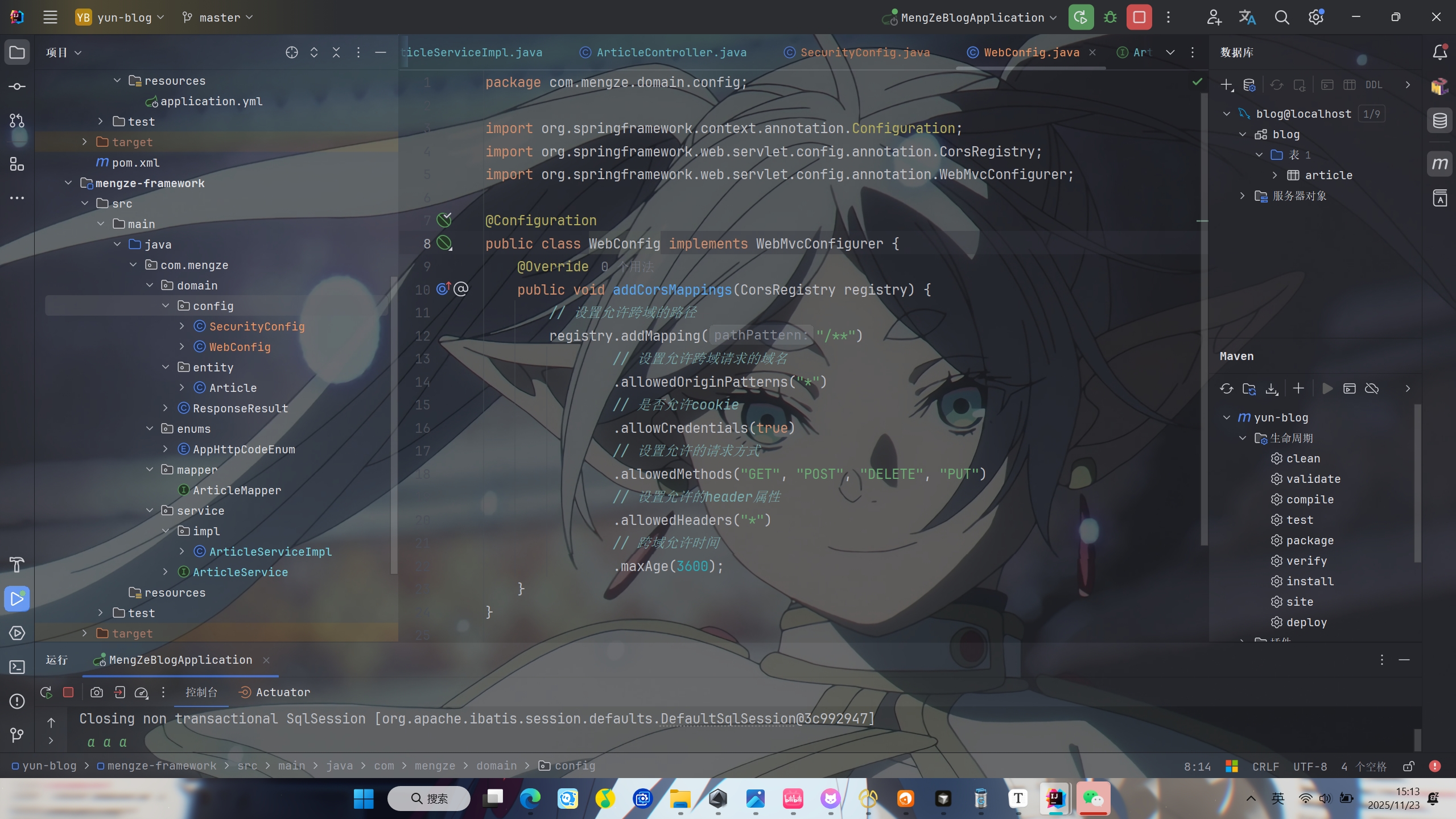 由于网站跨域问题导致前端热门文章中无法获取后端传过来的数据,所以要编写WebConfig类来解决跨域问题