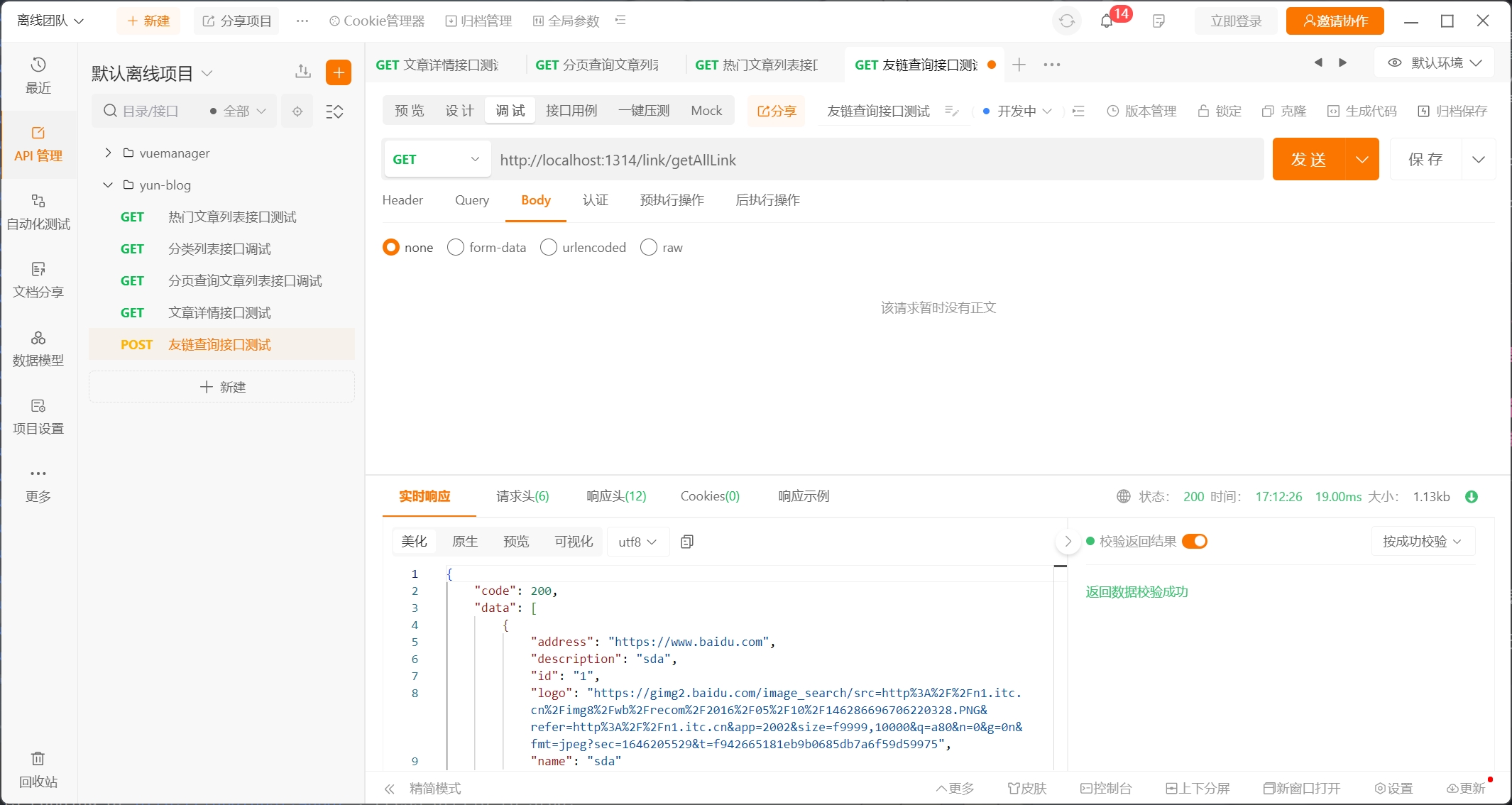 @GetMapping("getAllLink") public ResponseResult getAllLink() { return linkService.getAllLink(); } }
