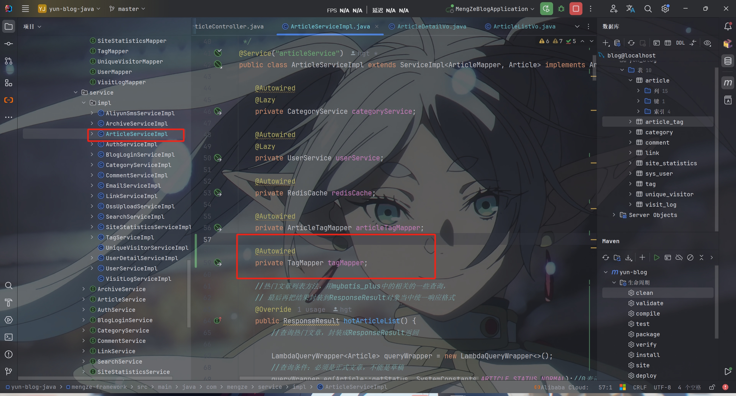 在ArticleServiceImpl类中引入TagMapper