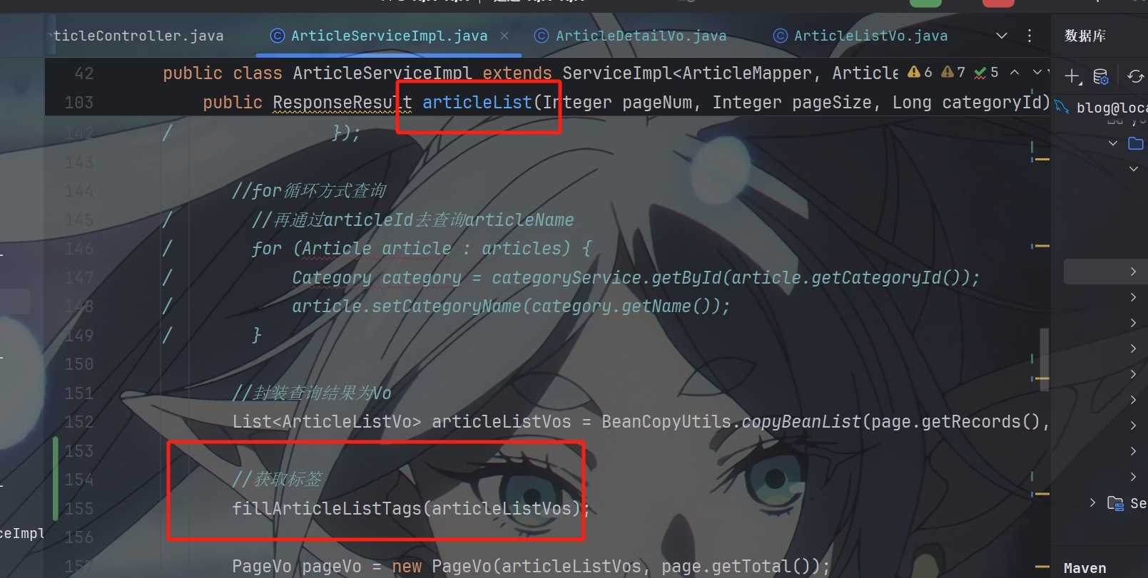 然后在两个方法分别在articleList和getArticleDetail中调用