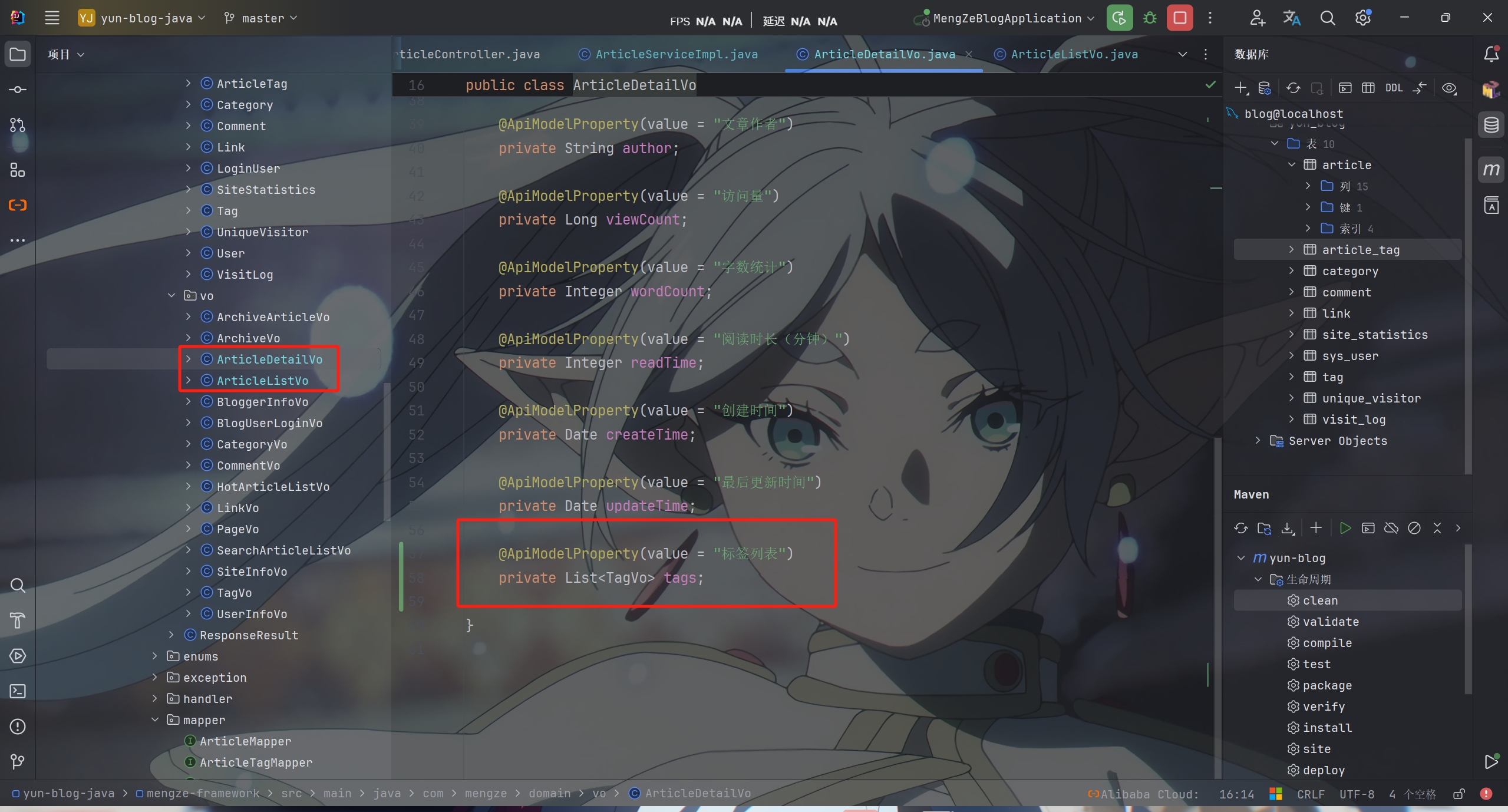 分别在文章列表和文章详情的Vo类中加上标签列表字段