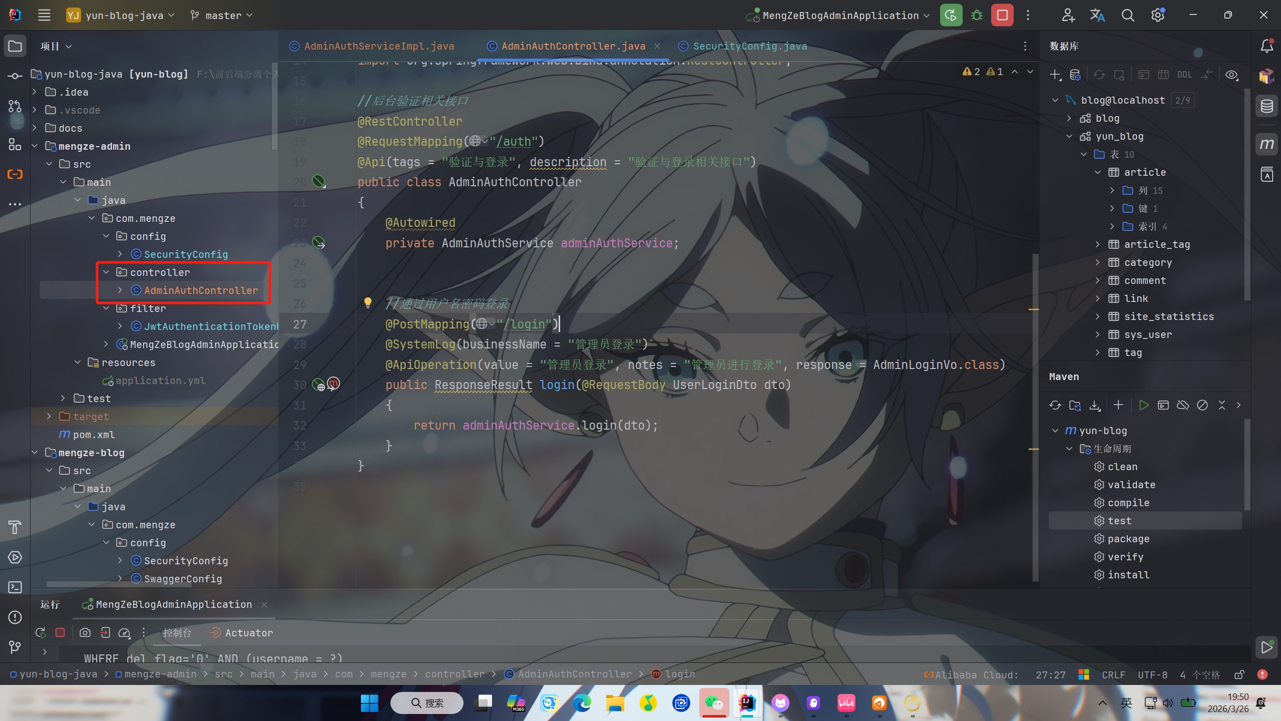 先创建AdminAuthController类负责验证相关的接口(包括登录)
