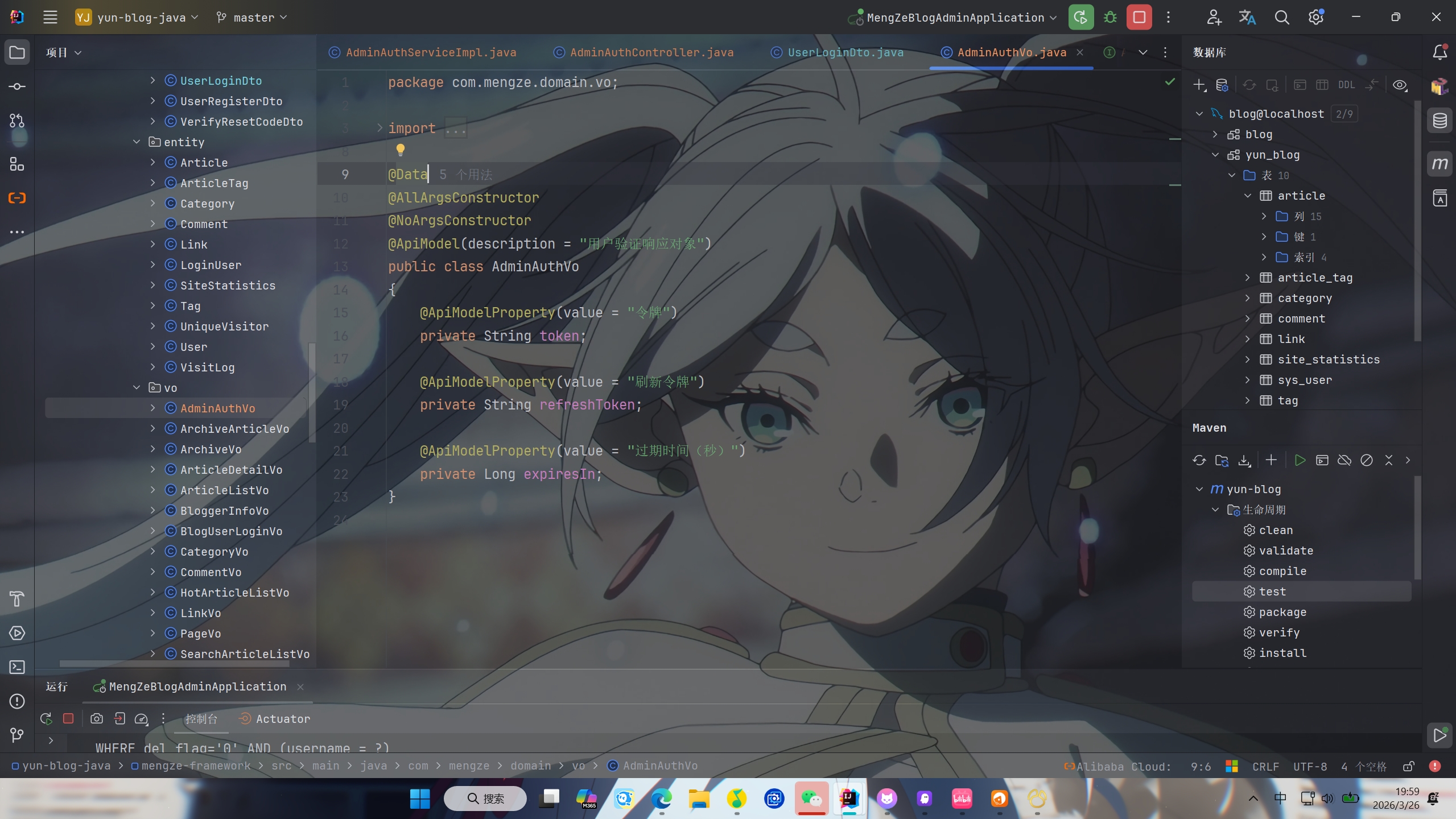 再创建创建AdminAuthVo类,里面包含token,refreshToken和expiresIn三个字段返回给前端