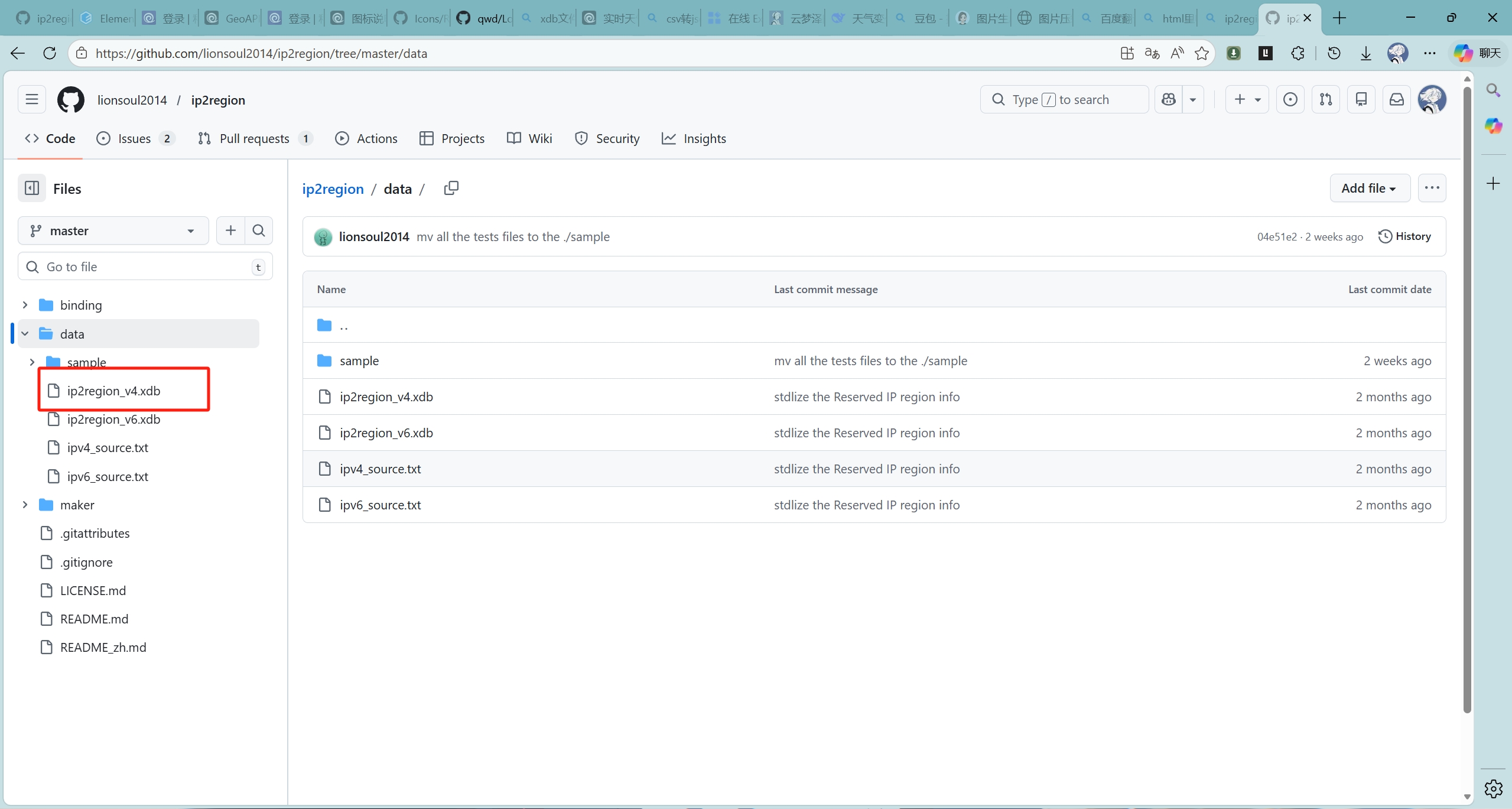 这里ip2region_v4对应的是Ipv4地址,你也可以下载v6的
