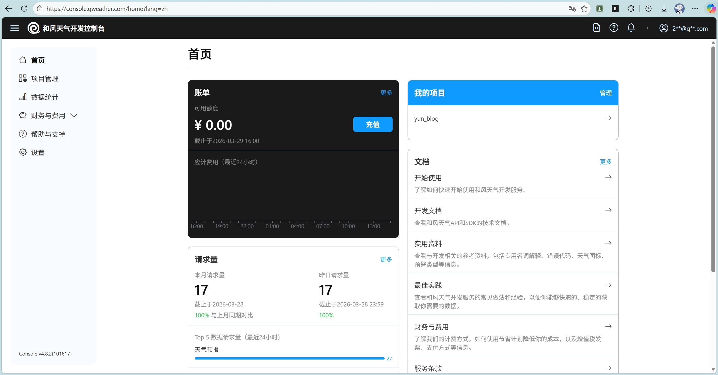 先要注册和风天气开发者账号
