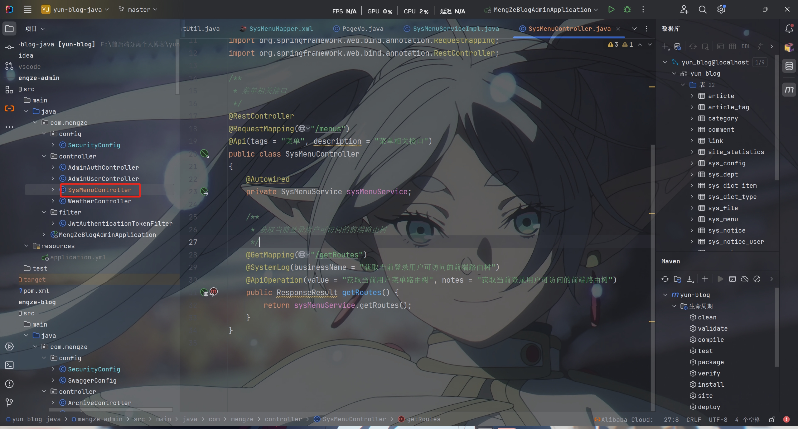 『博客开发日记-后台』之获取当前登录用户可访问的前端路由树接口的实现