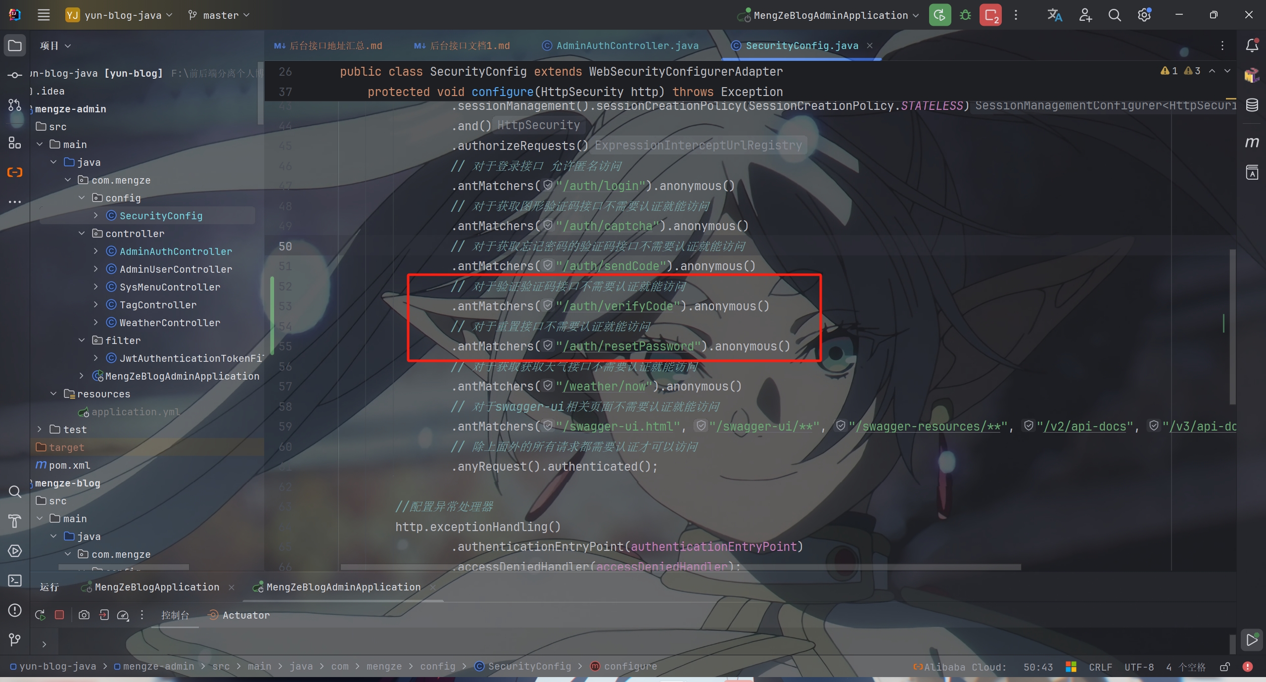 因为是未登录状态的操作,所以要给两个接口放行