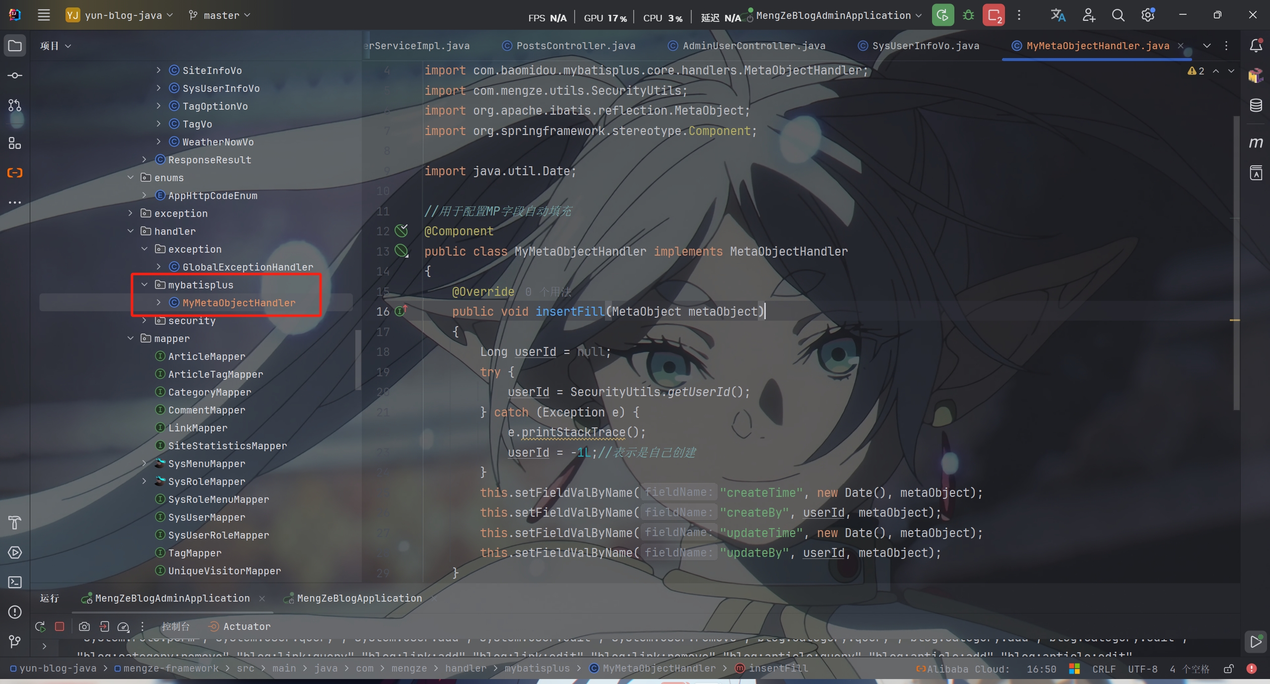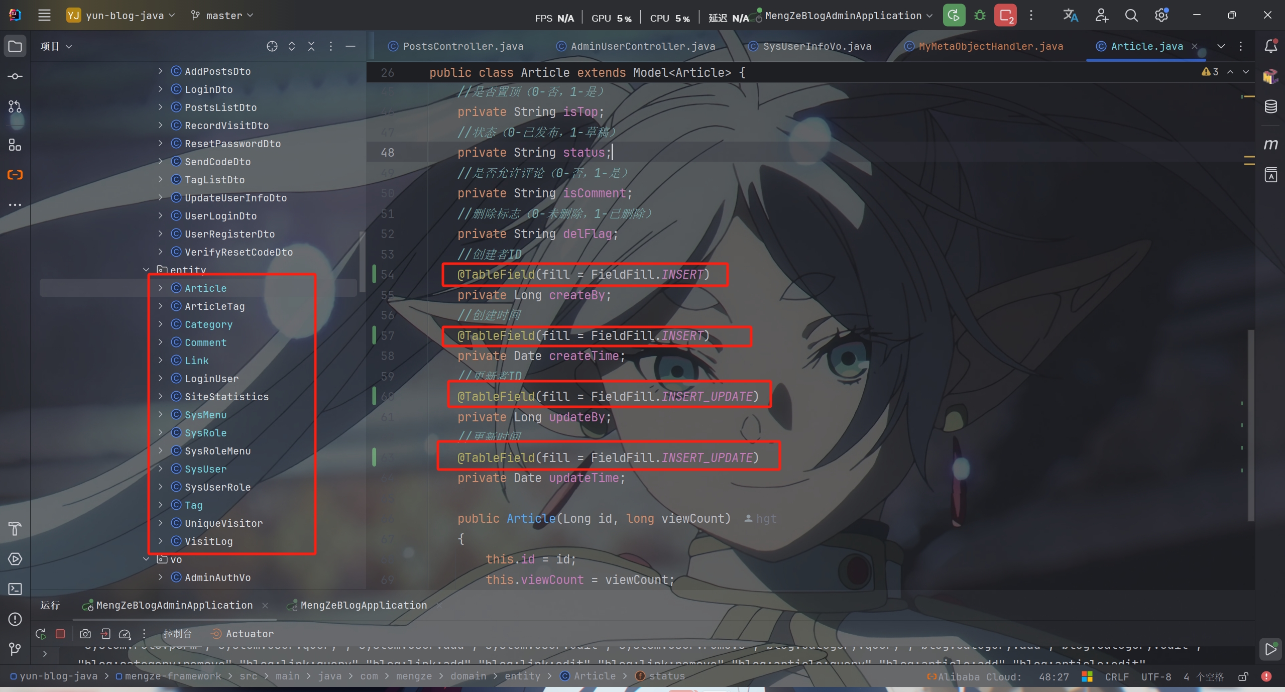 这样这些实体类在插入和更新时会自动填充对应的字段了
