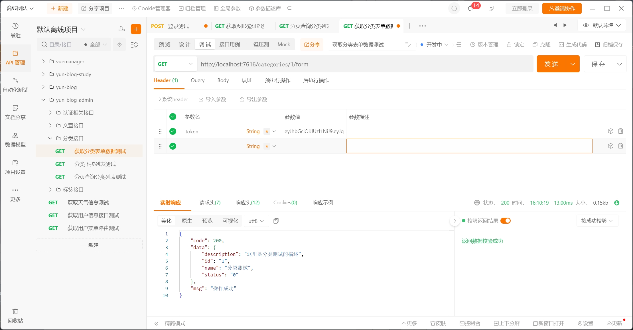 最后测试接口成功获得数据