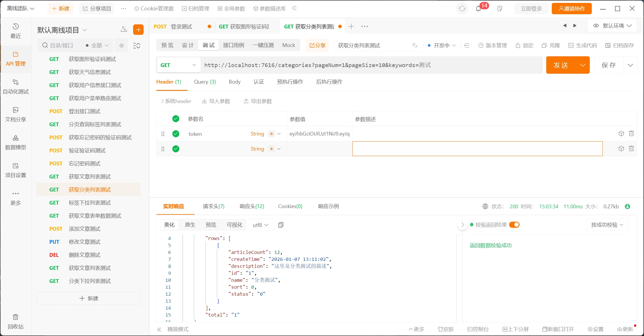 获取分页查询分类列表接口的实现