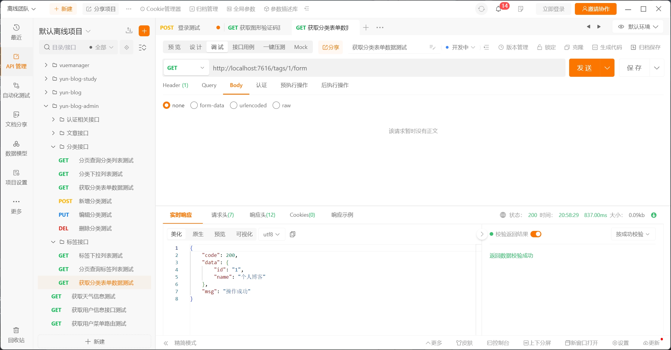 最后测试接口成功获得数据